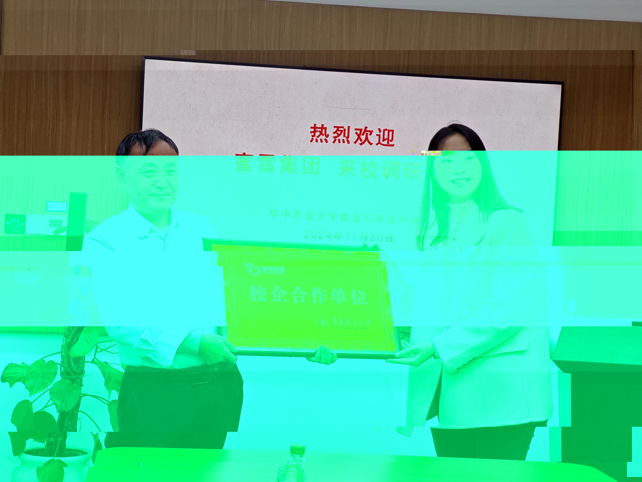 本次簽訂建立校企就業基地,旨在建立穩定的人才引進機制,幫助校企雙方培養能夠解決産業實際問題的人才,幫助學生提前了解職場、了解食品行業。會上,學院黨委副書記呂瑞凱與蜜雪集團校招負責人陳冠龍簽訂就業基地協議書,黨委書記楊鐵貴向蜜雪集團人才供應部負責人吳菲菲授牌。