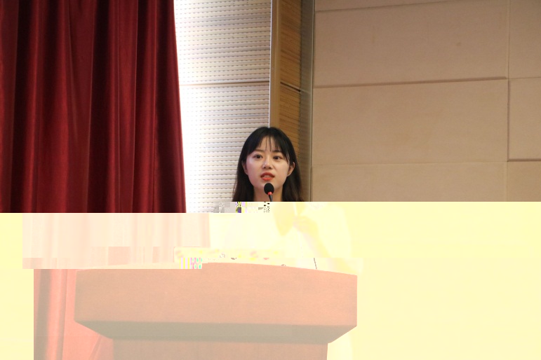 “優秀學生骨幹”代表董欣雨講述了自己在這一年的黨史學習和學生工作的感悟,她認為我們應在黨史學習中淬煉自己,向先輩們一樣挑得起重擔走得了遠路,能夠擔負起振興祖國的責任,學生工作是應該做好也必須做好的事情,每一次活動的背後都離不開老師的支持,學生骨幹的付出,希望大家能夠秉持敢為人先、博學笃行的信念,繼續發光發熱。